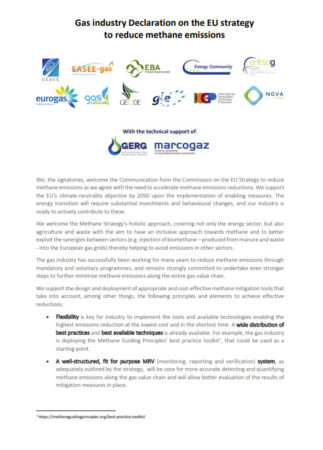 Gas industry Declaration on EU Strategy to reduce Methane Emissions