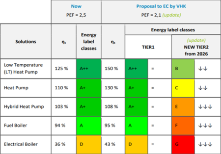 As a result of this change, the minimum space heating efficiency value (ηs), the Ecodesign lot1 revision, and the energy labelling classes also need adjustment to take into account the increase in electric appliances.