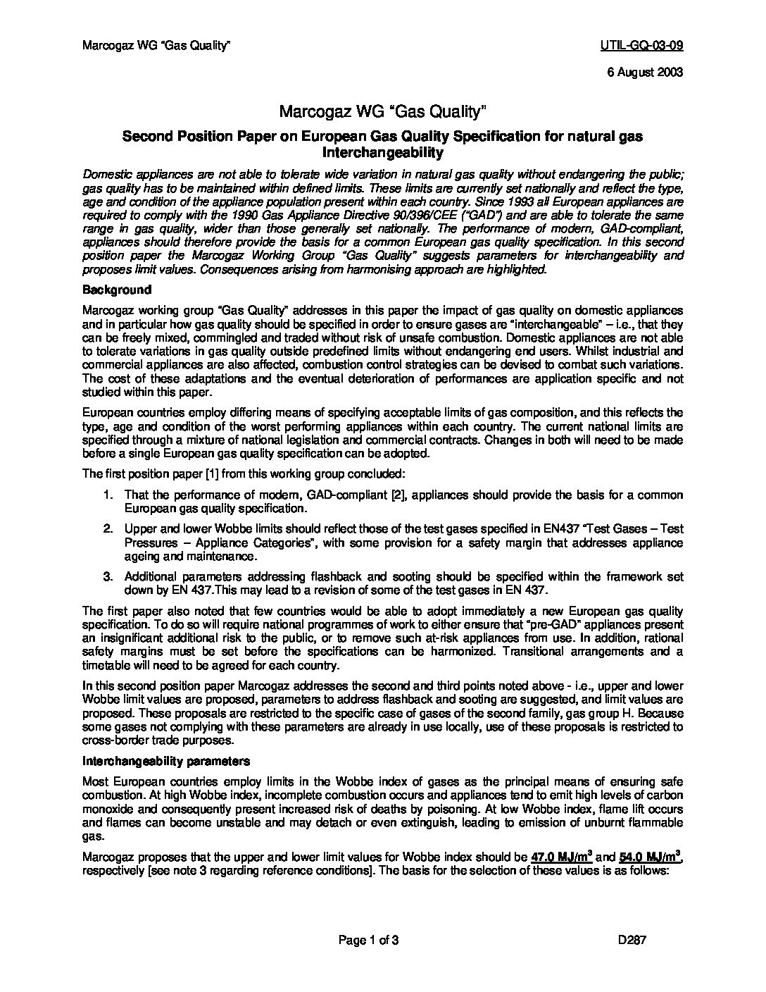 2nd Position Paper on European Gas Quality Specifications for Natural Gas Interchangeability