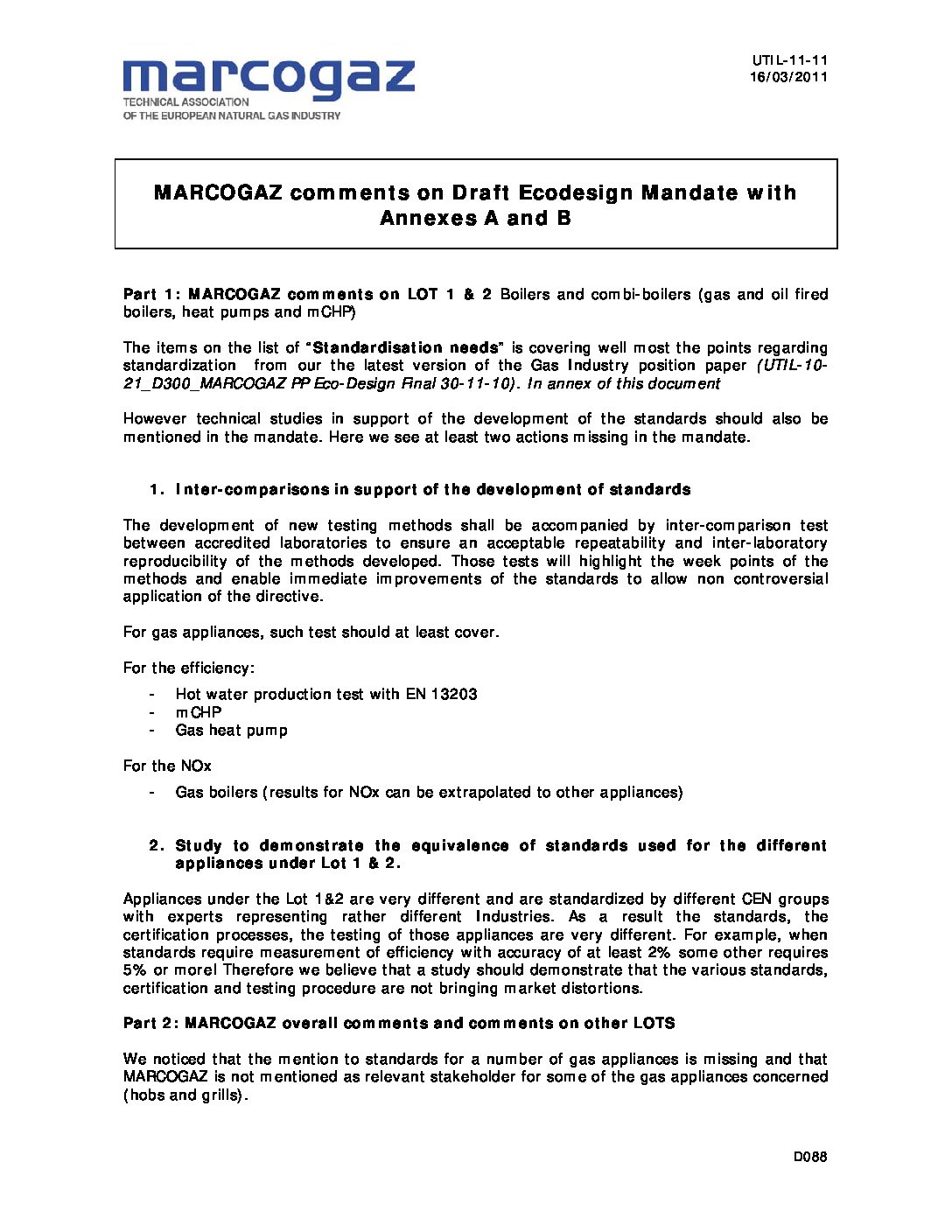 Draft Ecodesign Mandate with annexes A & B – MARCOGAZ comments