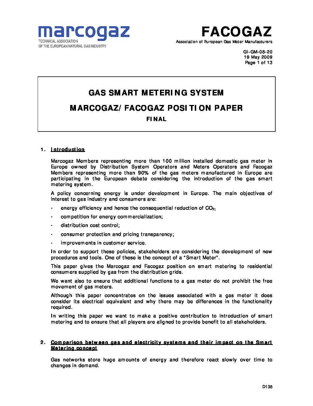 Gas Smart Metering System – MARCOGAZ & FACOGAZ position