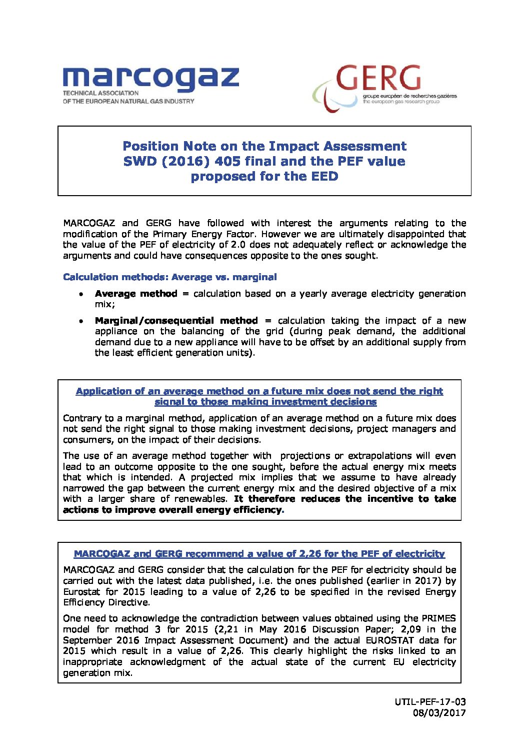 Impact Assessment SWD(2016)405 final & the PEF value proposed for the EED