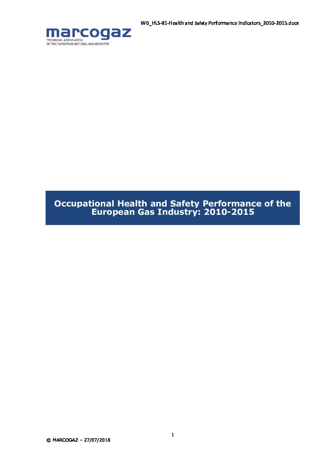 Occupational Health & Safety Performance of the European Gas Industry: 2010-2015