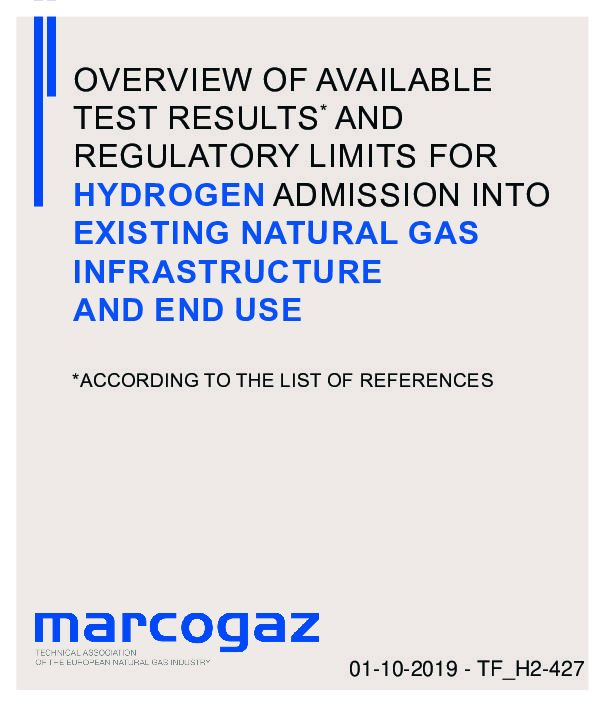 Overview of test results & regulatory limits for hydrogen admission into existing natural gas infrastructure & end use