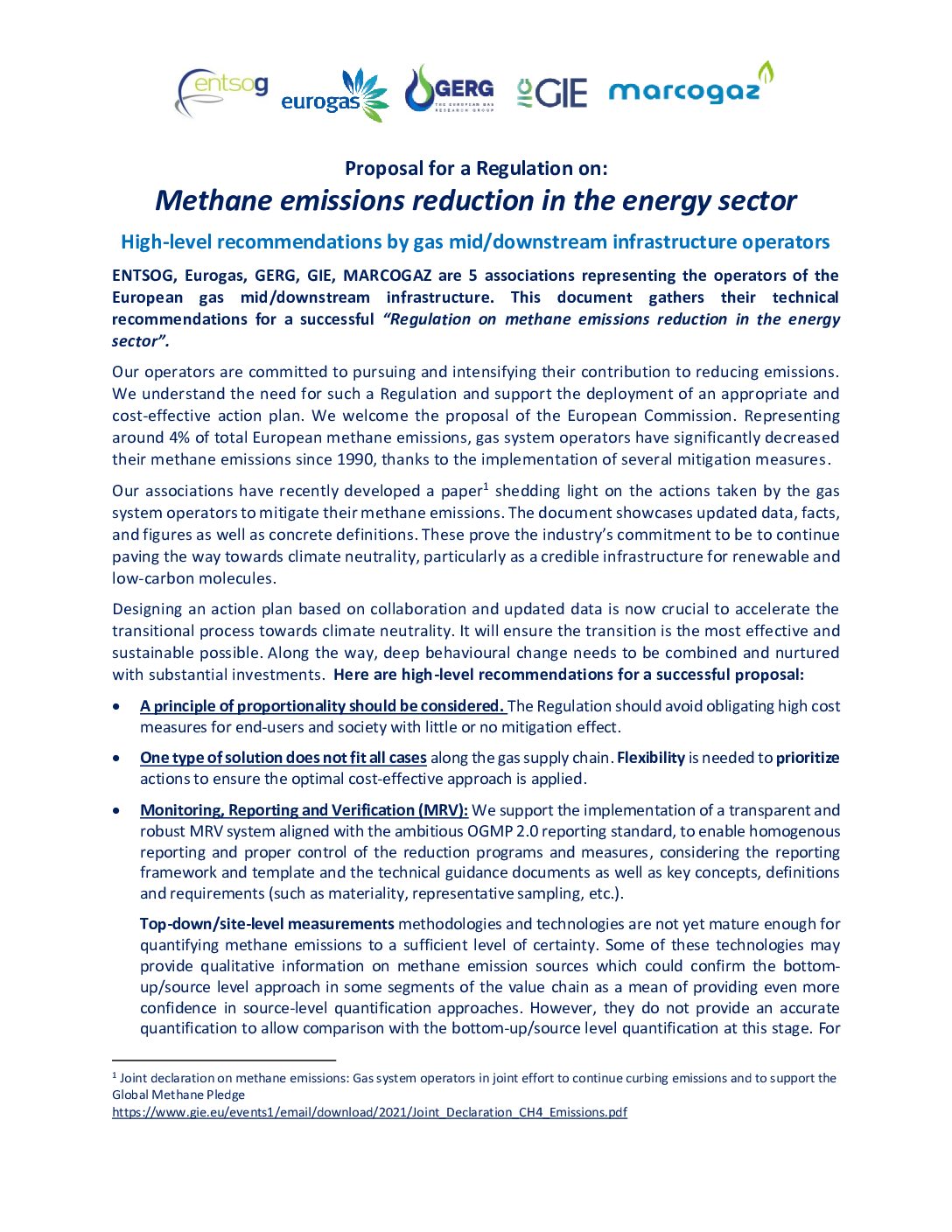 ENTSOG, Eurogas, GERG, GIE, MARCOGAZ are 5 associations representing the operators of the European gas mid/downstream infrastructure. Our operators are committed to pursuing and intensifying their contribution to reducing emissions. We understand the need for such a Regulation and support the deployment of an appropriate and cost-effective action plan. (read more…)