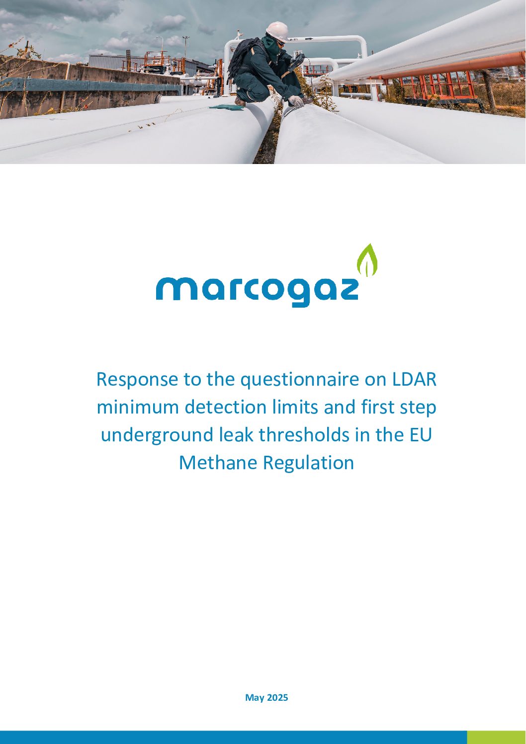 This document presents MARCOGAZ’s response to the European Commission’s questionnaire on Leak Detection and Repair (LDAR) practices under the Methane Regulation. It underscores the industry’s commitment to methane emission reduction while supporting a practical, technologically neutral, and field-proven approach to leak detection.