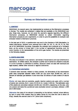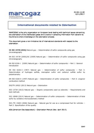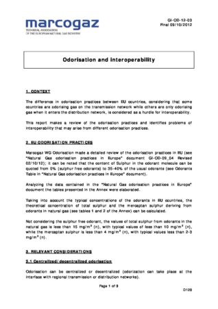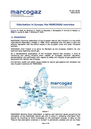 Odorisation in Europe: the MARCOGAZ overview – POSITION PAPER